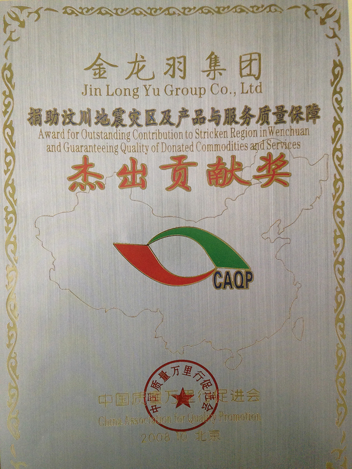 捐助汶川地动灾区及产品与服务质量包管优异孝顺奖